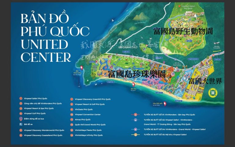 - 富國聯合中心地址:Grand World, Phu Quoc United Centre, DT 45, Ganh Dau,Phu Quoc, Kien Giang, 越南