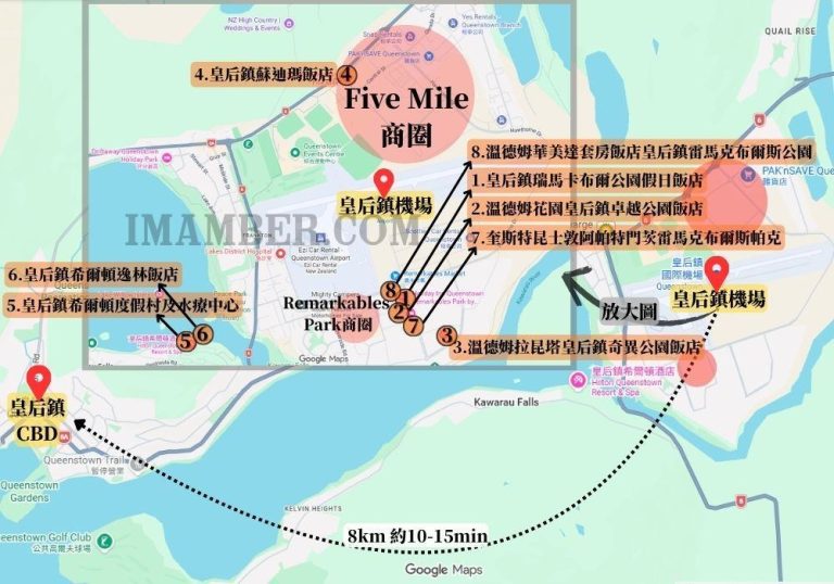 皇后鎮機場附近住宿主要集中在同一區域(Frankton),彼此之間距離其實不遠,差異主要在使用情境。